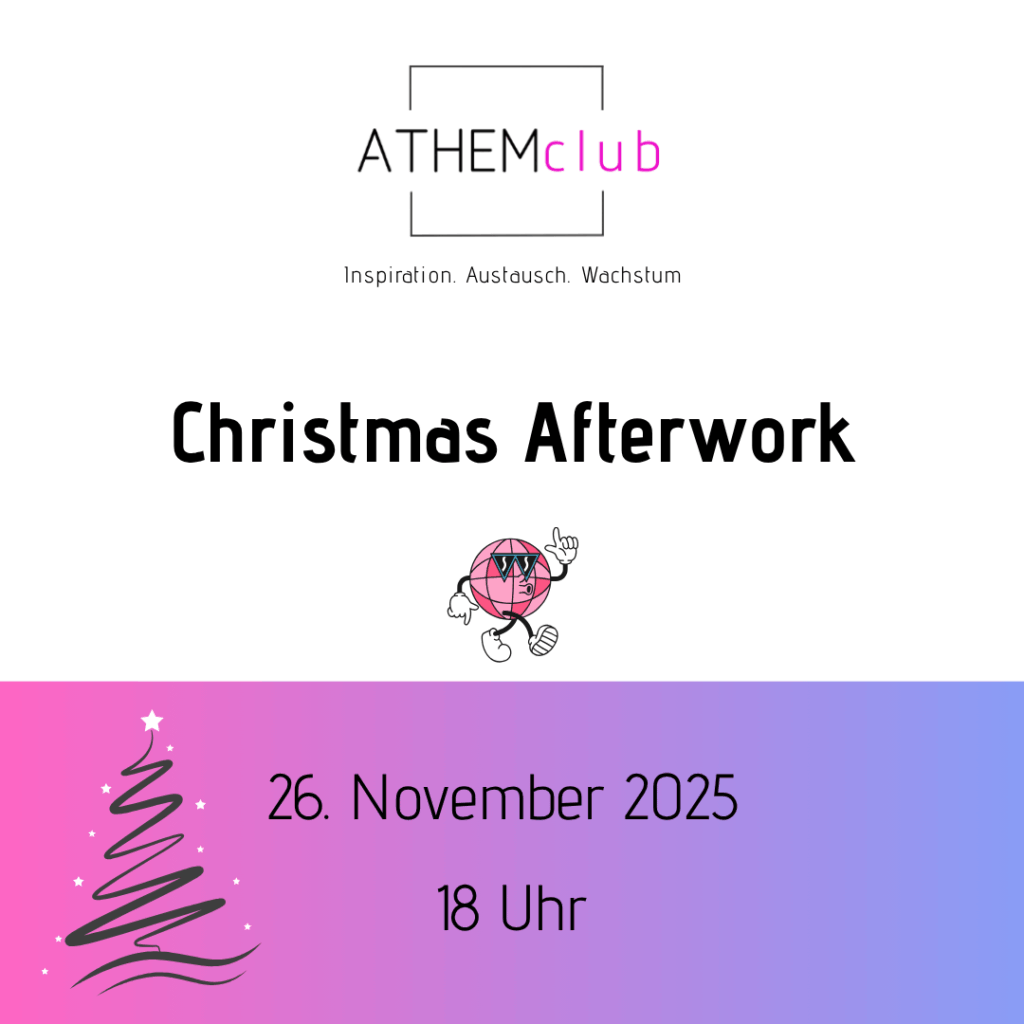 coole, inspirierende Atmosphäre des ATHEMclubs ein und lerne in entspannter Weihnachtsstimmung die Menschen besser kennen, die deine Vision für eine bessere Arbeitswelt teilen – der perfekte Moment für tiefgehenden Austausch und das Knüpfen von Synergien für 2026.